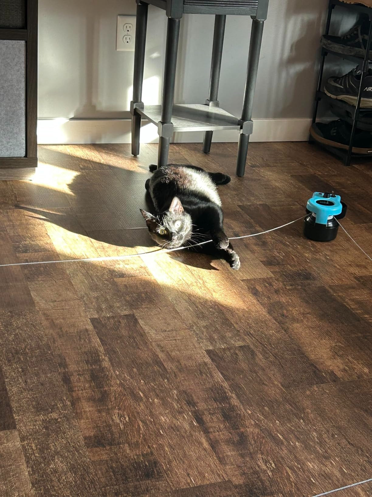 My cat goes crazy for this toy! The moving line keeps her running around and totally entertained. It’s quiet, durable, and works great even on smooth floors. Highly recommend!
